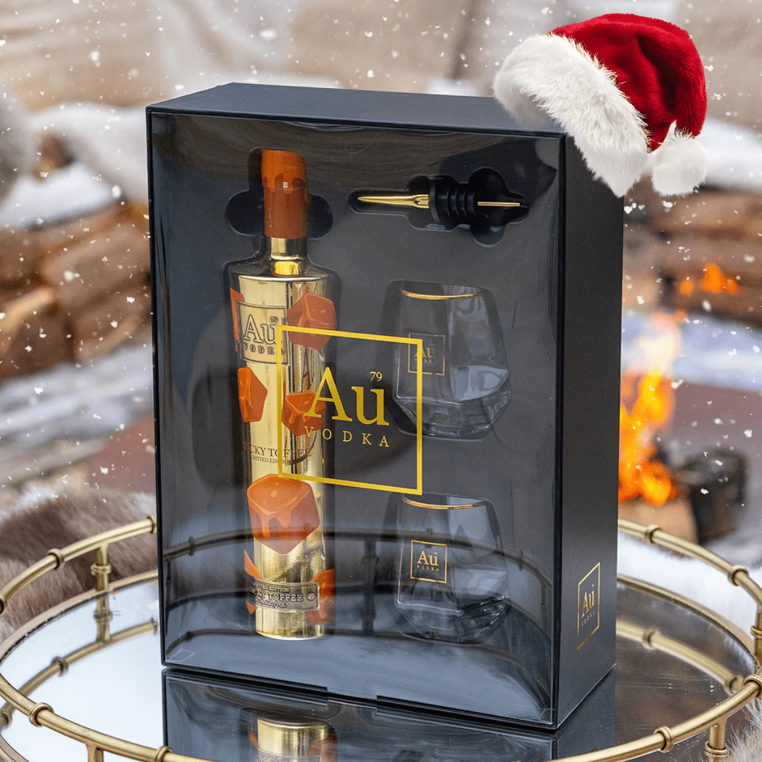 Give the perfect gift this festive season with the Au Vodka Sticky Toffee Gift Pack. Featuring New Limited Edition Sticky Toffee 70cl, paired with two Au Diamond Cut Glasses and an Au Speed Pourer, all inside a luxury gift box.