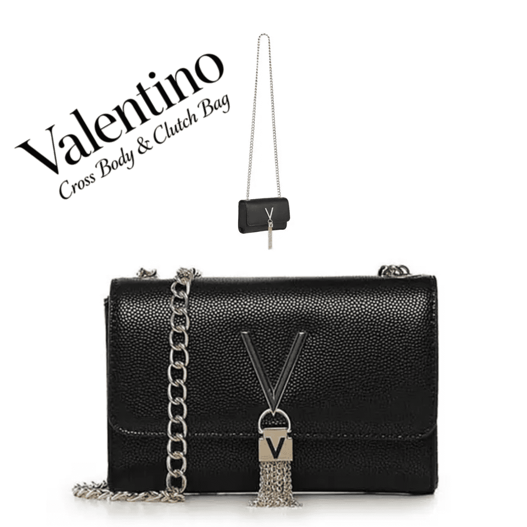 This VALENTINO Divina crossbody can be held as a clutch or worn as a shoulder bag. Crafted from a grain-textured PU, the Divina Clutch is accented with silver hardware and tassel for an elevated look. Part of the Divina range, this elegant bag is the perfect addition to any wardrobe. Delivered with VALENTINO dust bag.
